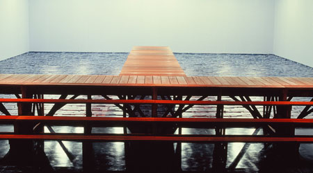 Precisamente con esa idea ha organizado João Fernandes esta exposición, buscando los pares y los impares, esas obras que completen la lectura de los territorios menos conocidos del artista. De ahí la presentación de varias instalaciones apenas vistas o nunca antes producidas. Es el caso de Amerikkka (1991-2013), otra lectura crítica sobre la idea de conquista Yankee con una alusión nada inocente al Ku Kus Klan. Una obra con la que Meireles salta a 1991, a la primera vez que viajó a Madrid: “Fue un viaje relámpago. Vine porque tenía una cita con Helga de Alvear, cuando estaba en la galería Juana Mordó, ya que me invitó a hacer un proyecto coincidiendo con el aniversario de la llegada de Colón a América. Pensé en una pieza formada por un suelo compuesto por 20.000 huevos de madera, sobre el que se puede caminar, y un inmenso techo en el que aparecen incrustadas 1.000 balas doradas. Fue imposible hacerla entonces. Piensa en transportar 45.000 balas de un país a otro. Dificilísimo…Tampoco salió otro proyecto que en ese momento pensé para la exposición Cocido y Crudo, en el Reina Sofía, Ku kka Ka kka, que aludía a la Mierda de artista de Piero Manzoni, como las que se podían comprar de papel maché en Brasil entonces, en puestos ambulantes…”