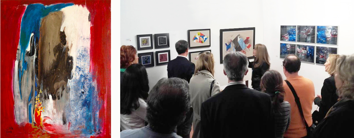 En la muestra se podrán observar las obras de los escultores, Krum Stanoev artista veterano de origen Búlgaro que nos sorprende con sus esculturas-mural de metal cortado a láser, confiriendo a su obra una gran ligereza pero con una densidad de significado que hace que lo percibamos como un poema escultórico y el joven talento Ivan Gómez, escultor español que trabaja con diversos materiales, alabastro, bronce, hierro, para dar vida a unos rostros cargados de tranquilidad y misticismo al encuentro de esos sentimientos ocultos y reprimidos del individuo que observa, usándolo como espejo donde mirarse. En la pintura tenemos a la artista alemana Astrid Reichel que viene desarrollando un arte muy personal, de alto valor expresivo entre el expresionismo abstracto y el informalismo, aunque parte de una sólida formación académica, su inquietud es la búsqueda y experimentación con el color y la materia canalizados por los sentimientos y la intuición. Continuando con la misma línea expresionista y abstracta, la pintora canadiense Deborah Catton nos presenta una pequeña colección donde el color y los sentimientos están relacionados, cada tonalidad expresa un estado de ánimo. Las pinturas de esta serie responden a un viaje reciente que hizo a la costa del sur de España. Muy diferente es la obra de la creadora española Bibivi, pintora, ilustradora, y artista Gráfica de estilo muy versátil, influenciado por la Publicidad, la moda, los carteles, la cultura iconográfica y el arte Pop. Su obra es un reflejo y una crítica de la sociedad de consumo. Lika Shkhvatsabaia, artista georgiana nos ofrece la armonía a través de una abstracción figurativa de colores intensos y brillantes del luminismo Mediterráneo, como bien dice la artista el optimismo define su pintura como un grito de esperanza dentro de un mundo contradictorio y complicado.
