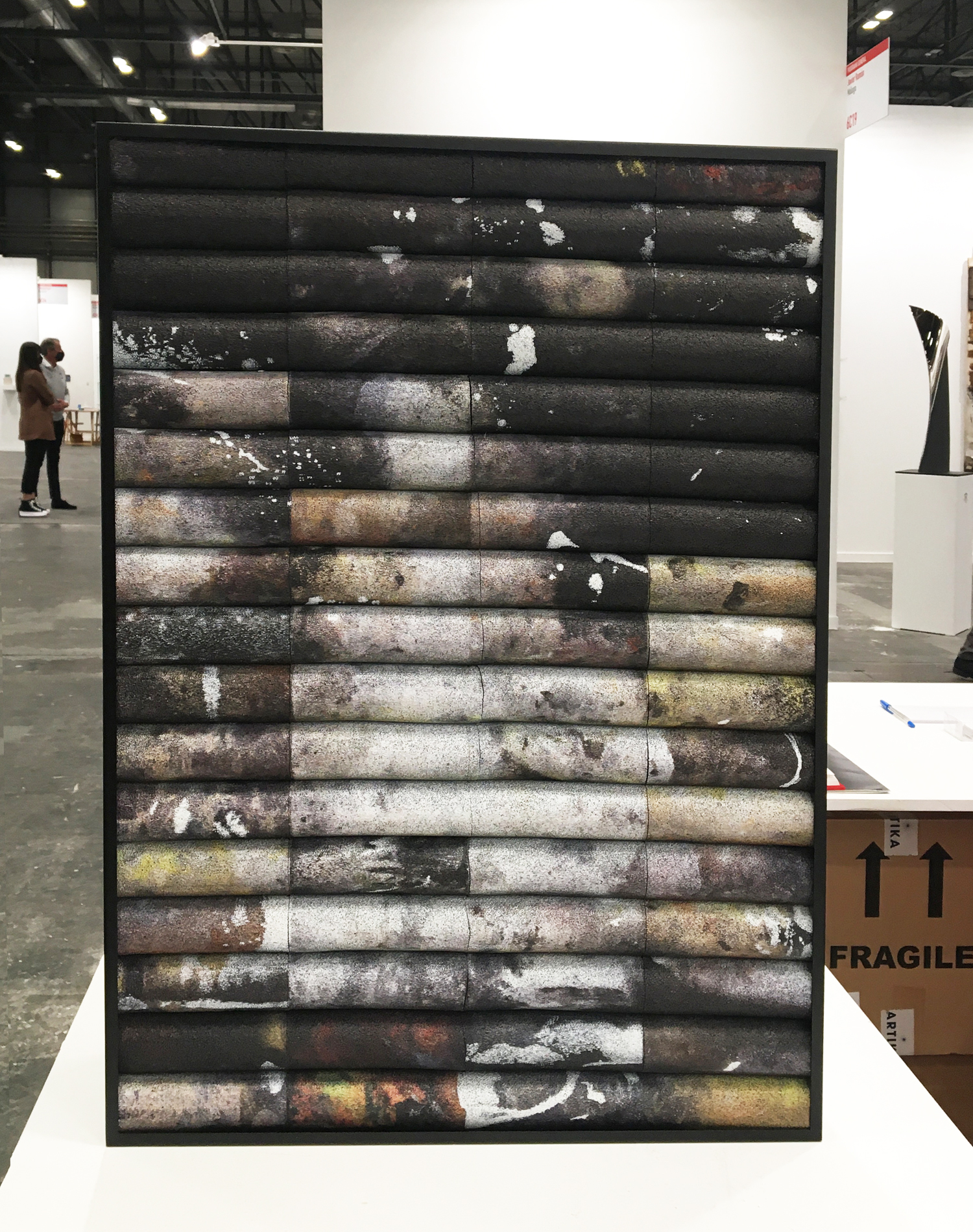 Nuestra siguiente visita fue toda una experiencia artística, y muy recomendada, es la exposición de Pablo Drake, artista que trabaja con materiales reciclados. Desde cartones recuperados hasta cintas adhesivas componen su lenguaje expresivo para llegar a la esencia de la figura y deshacerse de lo superfluo.